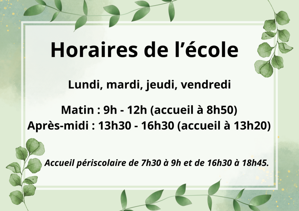 Les horaires de l’école